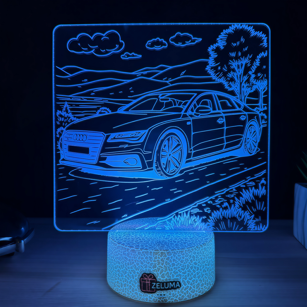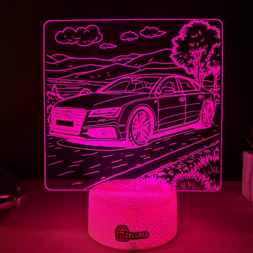 🚗 Stil, eleganta si performanta – toate surprinse intr-o lampa 3D spectaculoasa! Gravura detaliata a modelului Audi si lumina LED rosie creeaza un efect vizual impresionant, perfect pentru orice pasionat auto.