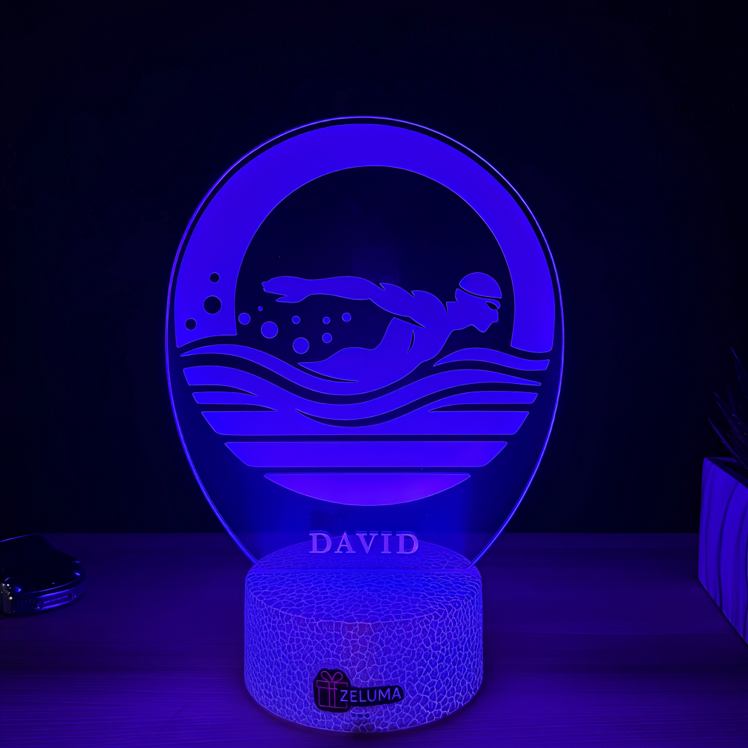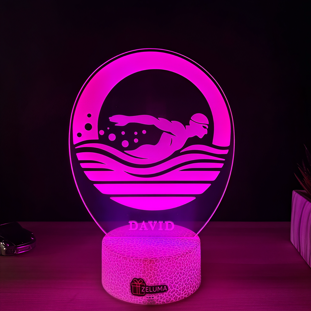 🔥 Personalizata cu numele tau, aceasta lampa este un cadou ideal pentru pasionatii de inot, sportivi sau copii care iubesc apa si competitia. O decoratiune moderna si motivanta, potrivita pentru camera de zi, dormitor sau birou.