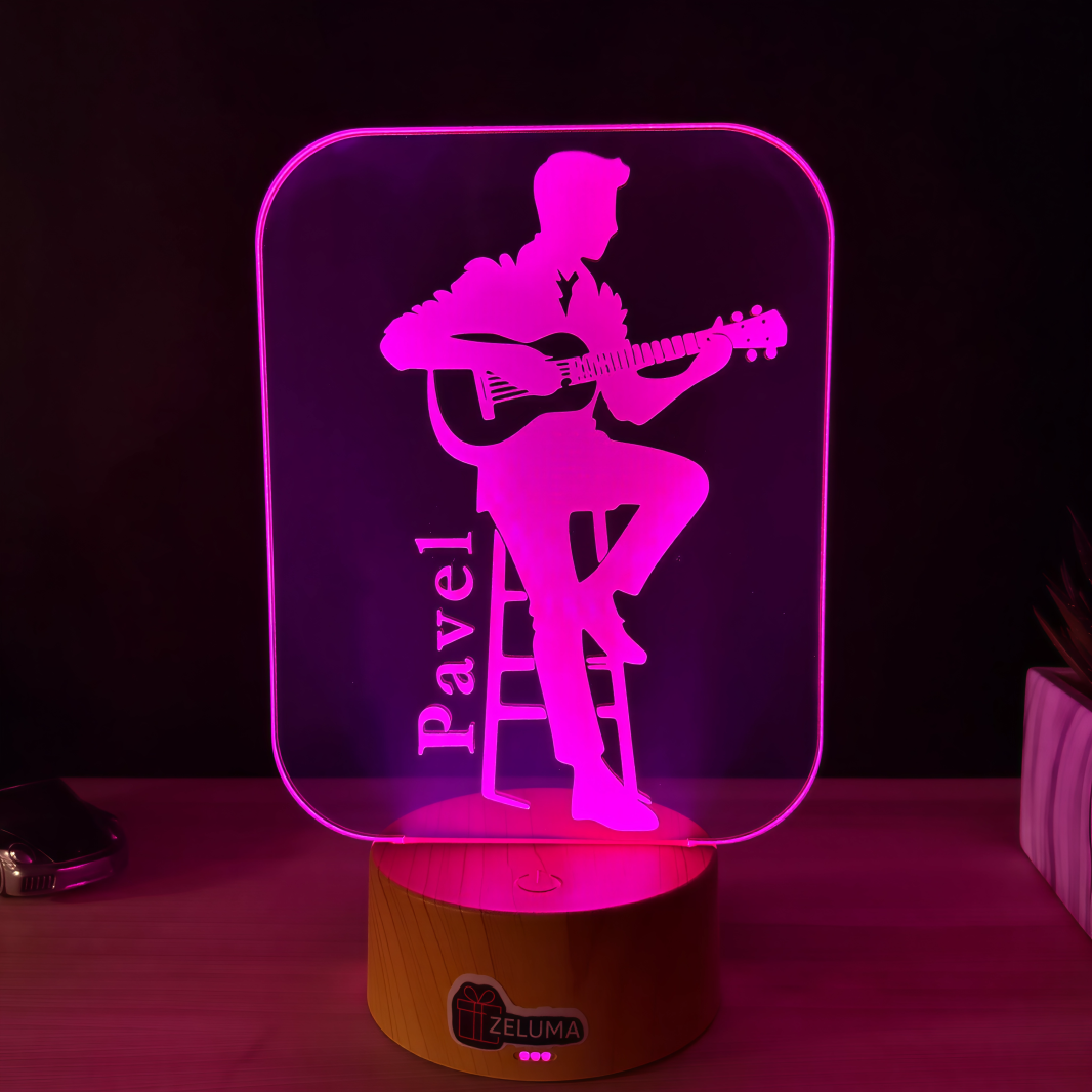 🌈 Perfectă pentru chitariști, pasionați de muzică sau elevi la primele acorduri, lampa creează un efect spectaculos de iluzie 3D. Poate fi personalizată cu numele dorit, transformându-se într-un cadou unic, memorabil și plin de personalitate.