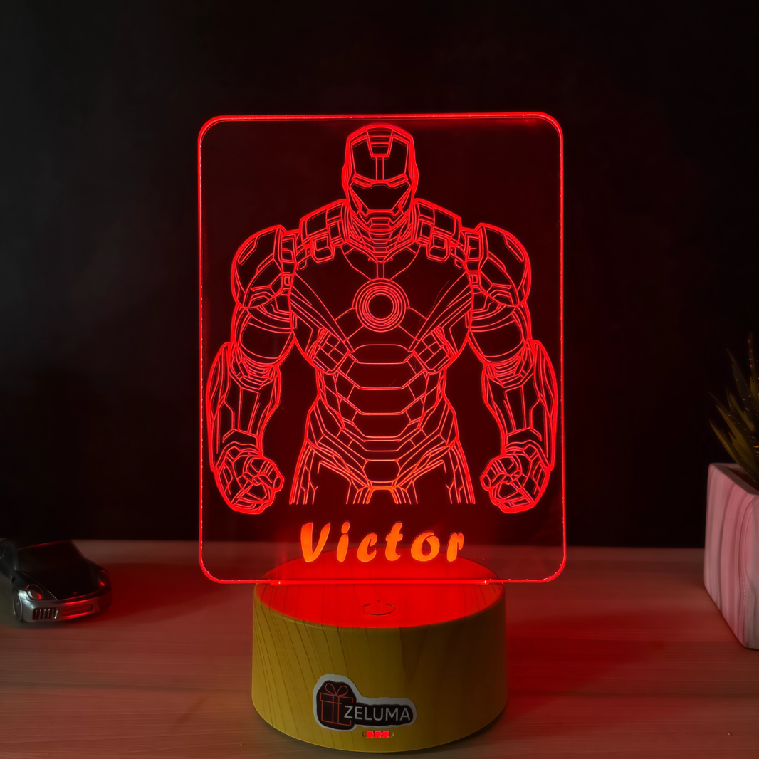 Lampa 3D „Iron Hero” este alegerea perfecta pentru micii fani ai tehnologiei si eroilor de neinvins! ⚡🤖