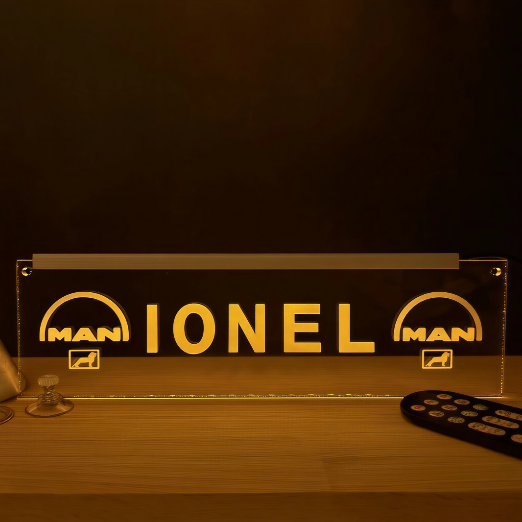 🚛 Placheta din plexiglas gravat, realizata special pentru soferii de TIR care vor sa adauge o nota personala camionului lor. Fie ca alegi un mesaj clasic sau unul personalizat, placheta lumineaza spectaculos si pune in valoare fiecare detaliu al designului.