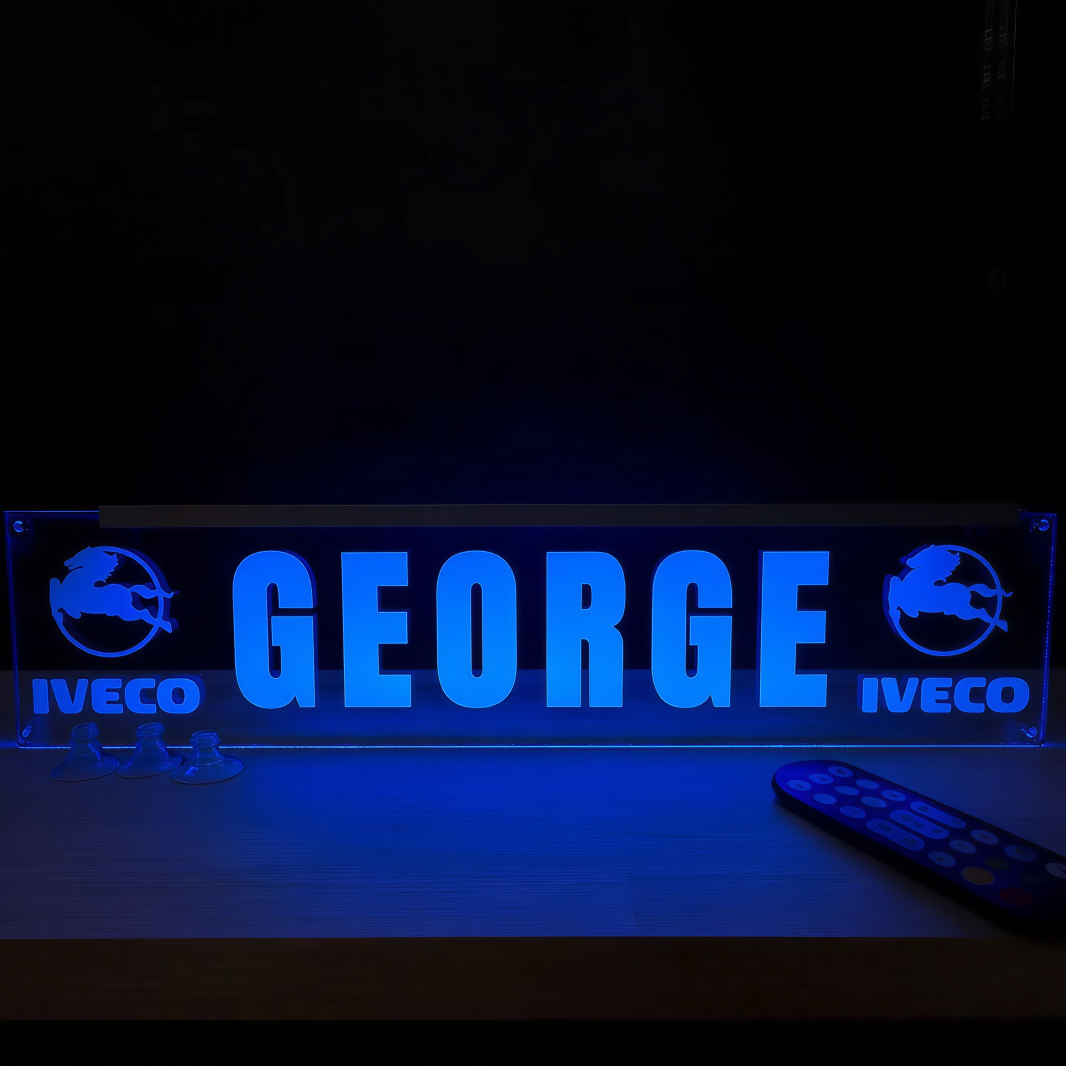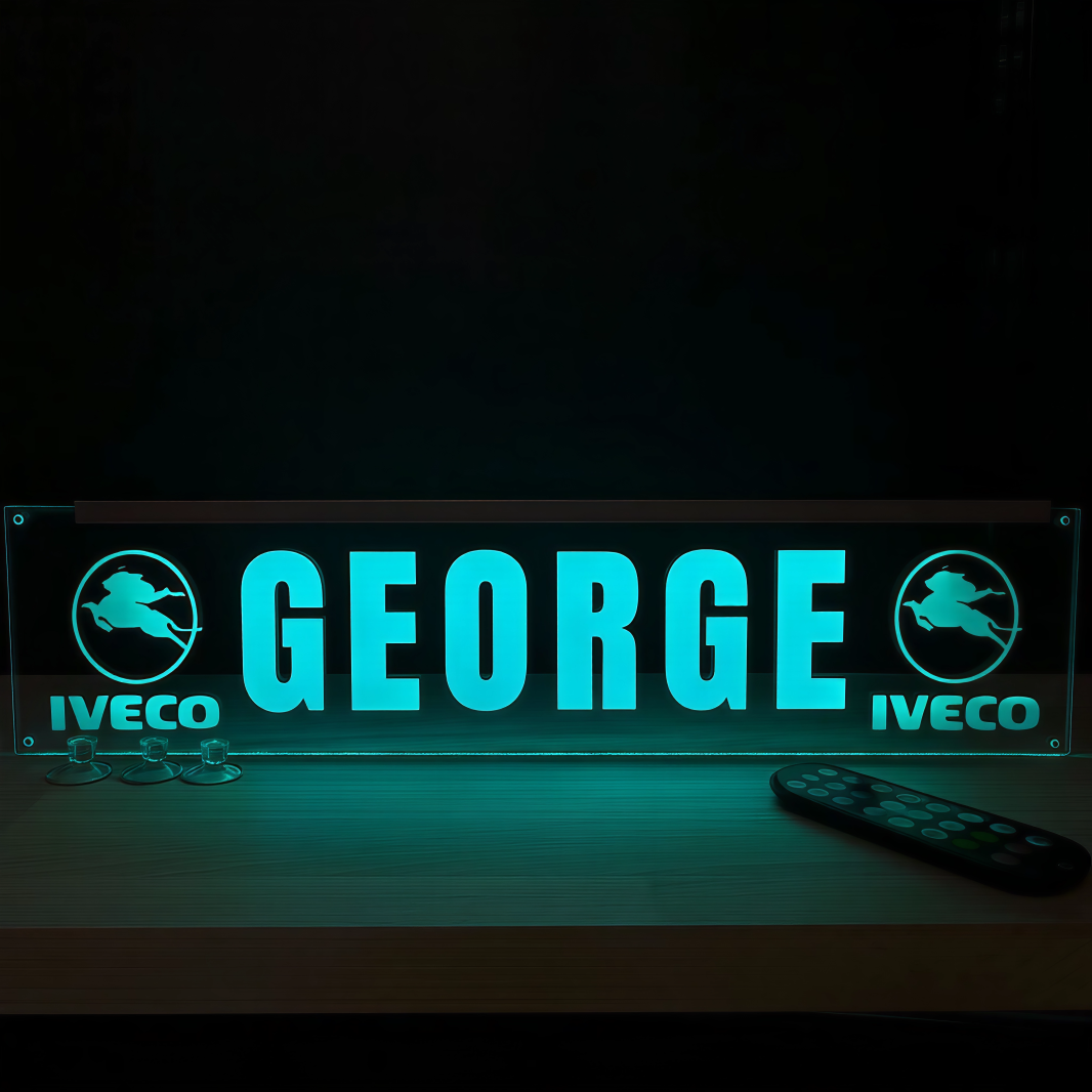 🚛 Placheta din plexiglas gravat, realizata special pentru soferii de TIR care vor sa adauge o nota personala camionului lor. Fie ca alegi un mesaj clasic sau unul personalizat, placheta lumineaza spectaculos si pune in valoare fiecare detaliu al designului.