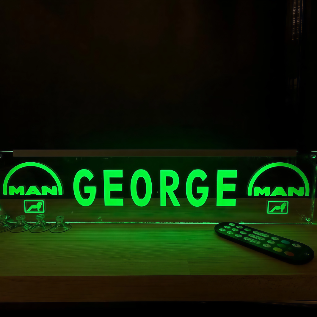 🚛 Placheta din plexiglas gravat, realizata special pentru soferii de TIR care vor sa adauge o nota personala camionului lor. Fie ca alegi un mesaj clasic sau unul personalizat, placheta lumineaza spectaculos si pune in valoare fiecare detaliu al designului.
