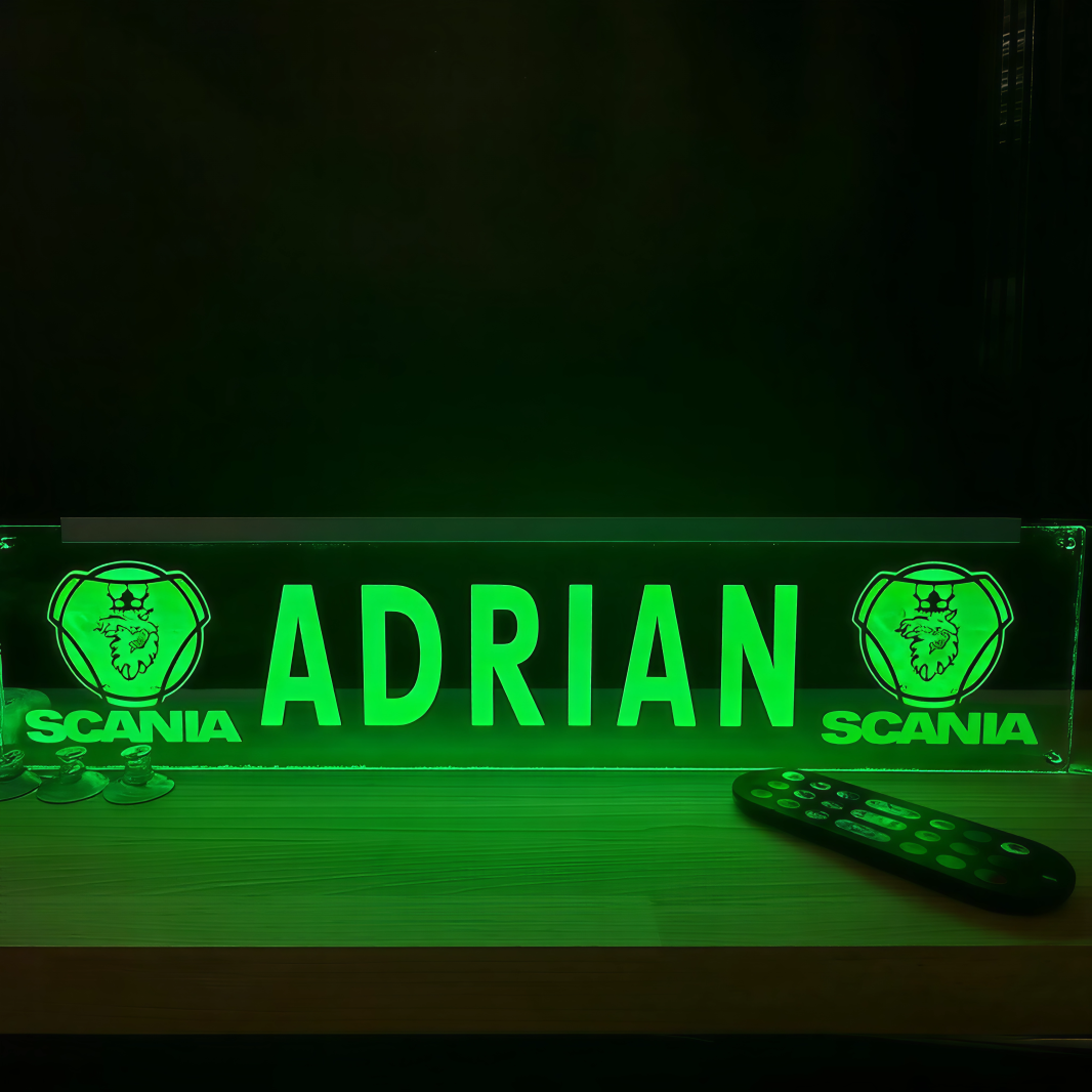 🚛 Placheta din plexiglas gravat, realizata special pentru soferii de TIR care vor sa adauge o nota personala camionului lor. Fie ca alegi un mesaj clasic sau unul personalizat, placheta lumineaza spectaculos si pune in valoare fiecare detaliu al designului.